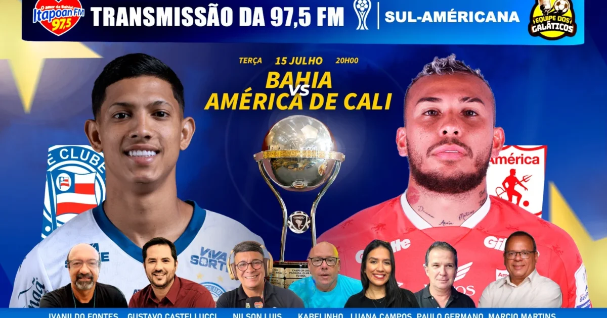 O Bahia enfrenta o América de Cali (COL) hoje, 15 de julho de 2025, na Arena Fonte Nova (Itaipava Arena Fonte Nova), em Salvador, às 21h30 (horário de Brasília), pelo jogo de ida dos playoffs das oitavas de final da Copa Sul‑Americana