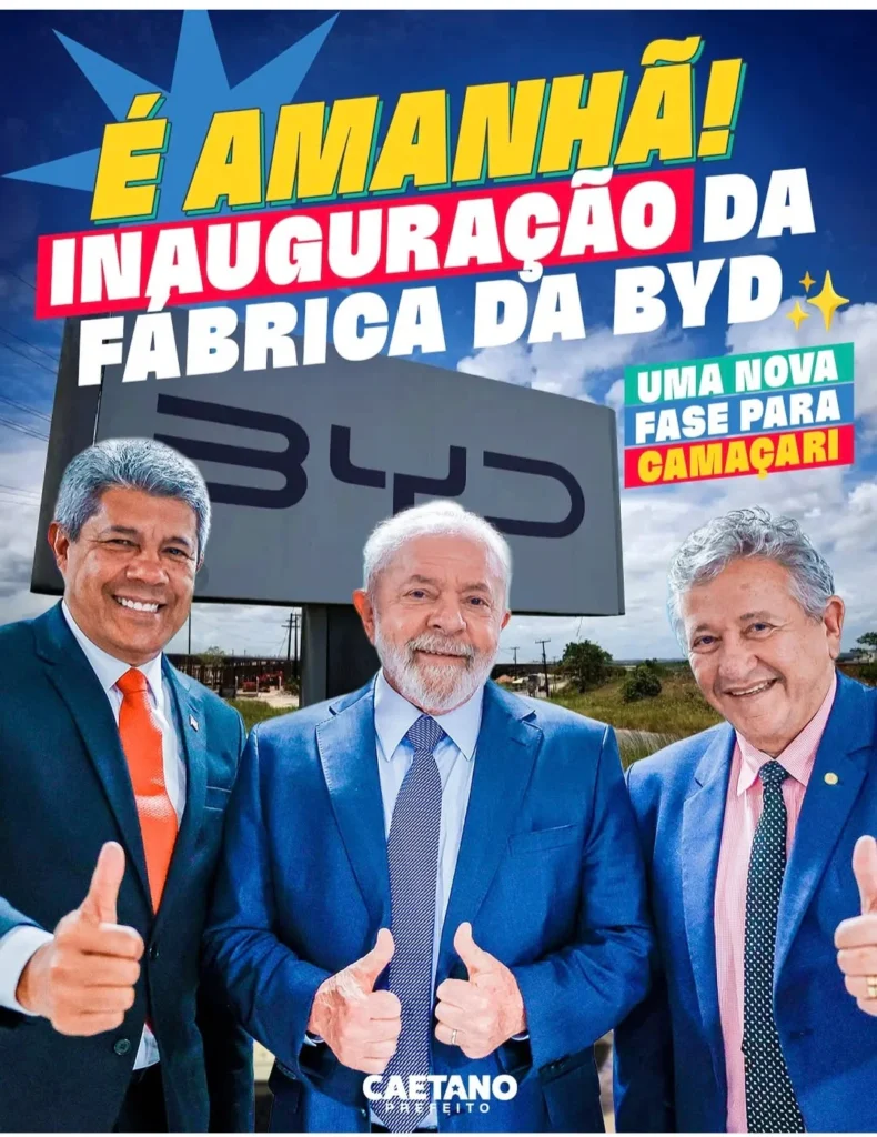 A cerimônia marca o início de uma nova fase da indústria automotiva brasileira e consolida o estado da Bahia como polo estratégico da mobilidade elétrica na América Latina. A fábrica foi instalada no antigo complexo da Ford, desativado em 2021, e passou por ampla modernização para abrigar as novas linhas de produção da montadora asiática.