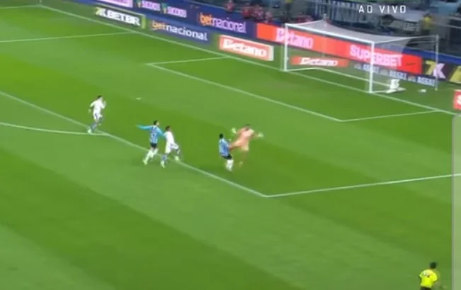 A primeira penalidade foi assinalada aos oito minutos, quando Magrão derrubou um jogador gremista dentro da área. O próprio Grêmio converteu a cobrança, abrindo o placar em casa. Na sequência, aos 14 minutos, o arqueiro voltou a se envolver em uma jogada imprudente e cometeu outro pênalti, que também foi convertido, ampliando a vantagem dos donos da casa.
