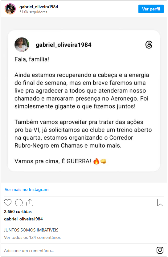 Também vamos aproveitar para tratar das ações para o Ba-Vi, já solicitamos ao clube um treino aberto na quarta, estamos organizando o Corredor Rubro-Negro em Chamas e muito mais.