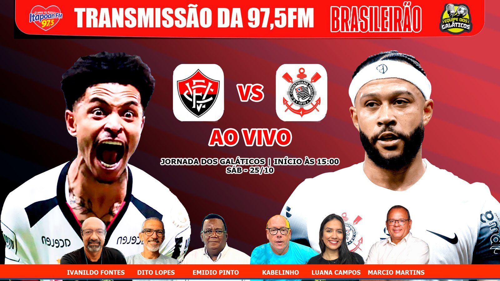 Vitória e Corinthians, neste sábado (25), às 16h, terá transmissão ao vivo do Premiere (pay-per-view).